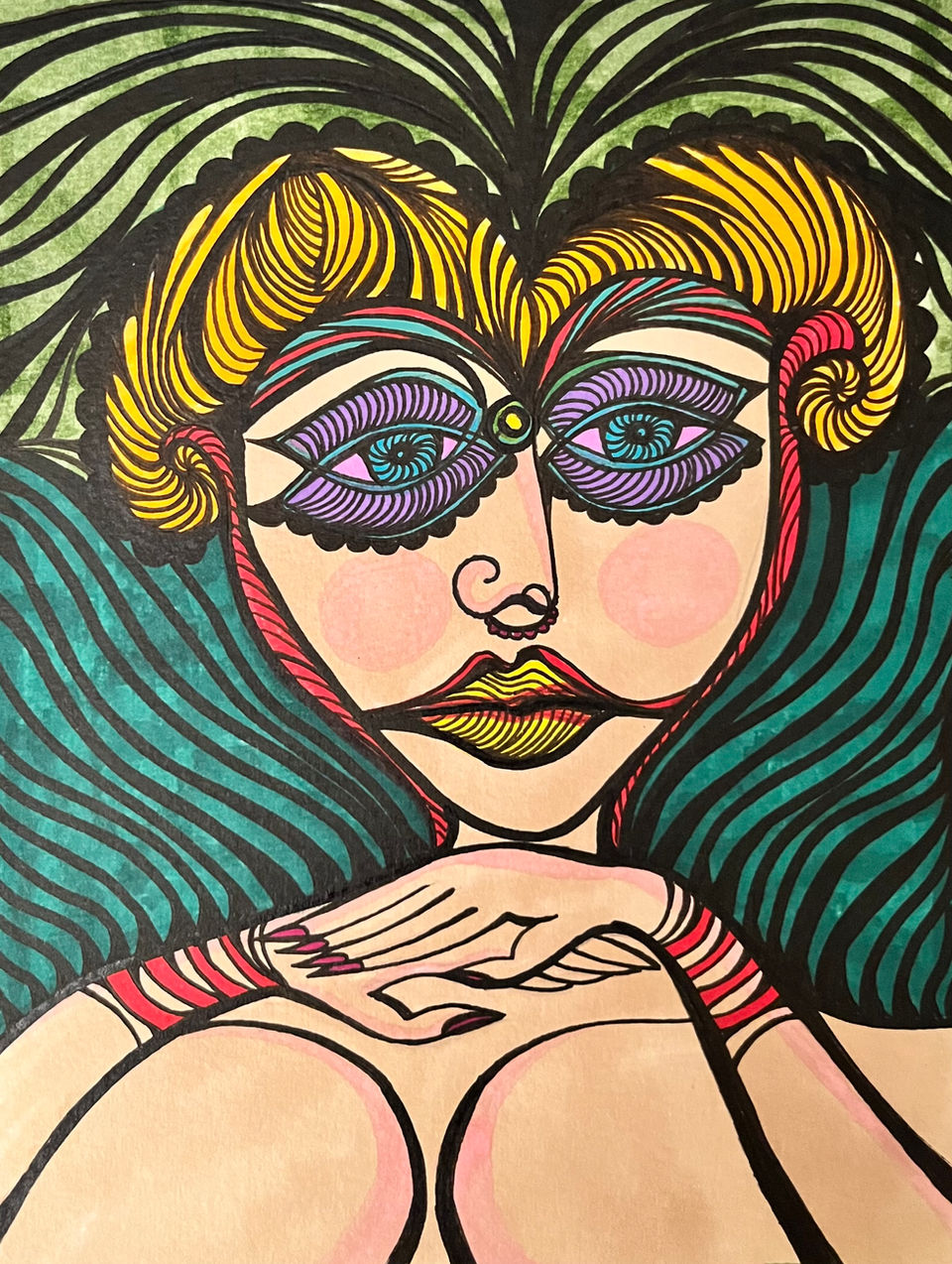 Aeini’s works are characterized by layered line movements, organic rhythms, psychological depth, and symbolic interpretations of the female form. Her art acts as a mirror, revealing the hidden emotional landscapes within the viewer and exploring cycles of transformation and identity.